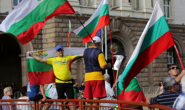 Недоволните хора, които се присъединяват към протеста срещу управляващите, са издигнали български знамена или носят лозунги с различни послания.