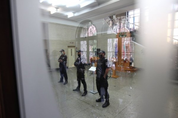 Демонстрантите влязоха в спор с охраната на сградата, след като стана ясно, че министърът на правосъдието още не е дошъл на работа.