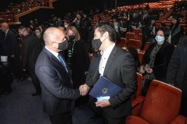 Премиерът Кирил Петков поздрави младите лекари на тържествена церемония по връчване на дипломите им в зала 1 на НДК.