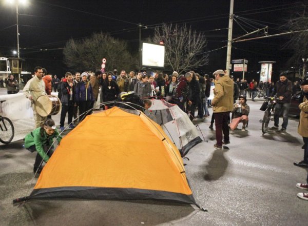 Около 19.00 ч. протестиращите блокираха за кратко движението на Орлов мост. Те опънаха две палатки насред пътното платно и обявиха къмпинг "Орлов мост" за открит.