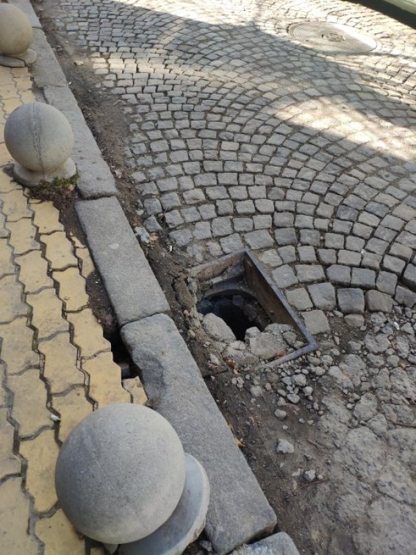 За изцяло отворена шахта в район "Възраждане“ получихме сигнал, придружен със снимки. От тях се вижда, че опасната шахта се намира пред офис на фирма, където се наблюдава засилен пътникопоток.