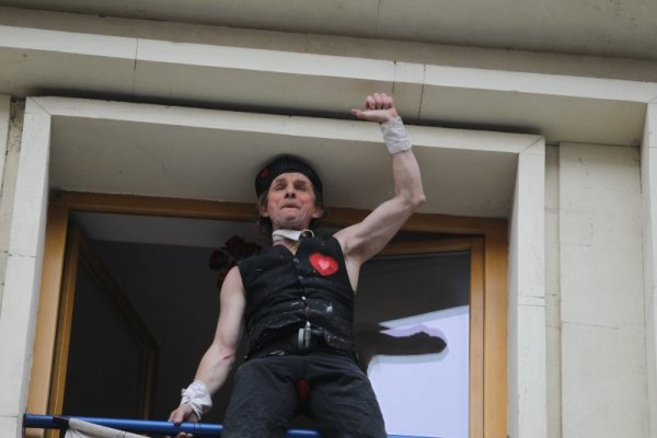 Френският танцьор и катерач Антоан Льо Менестрел изпълни впечатляващ пърформанс по фасадите на знакови сгради на площад "Славейков" в София.