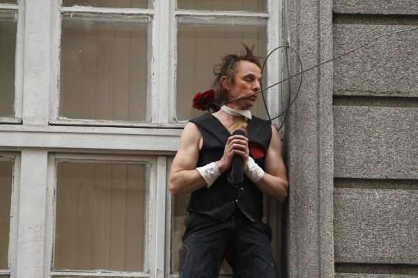 Френският танцьор и катерач Антоан Льо Менестрел изпълни впечатляващ пърформанс по фасадите на знакови сгради на площад "Славейков" в София.