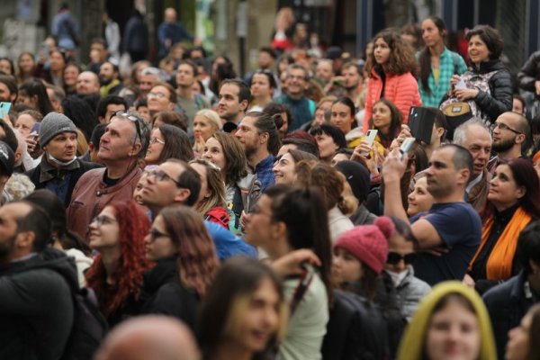 Френският танцьор и катерач Антоан Льо Менестрел изпълни впечатляващ пърформанс по фасадите на знакови сгради на площад "Славейков" в София.