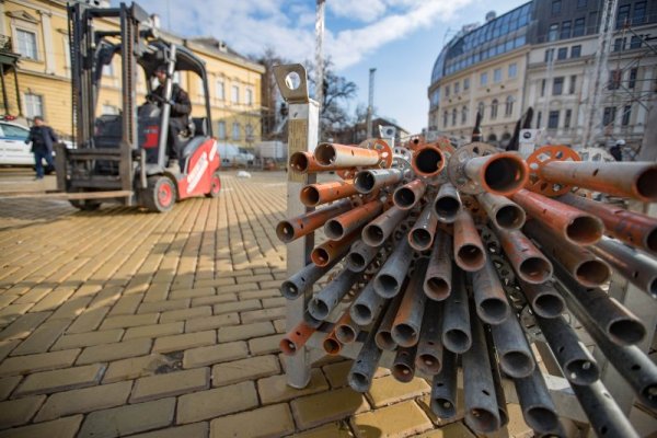 Работници започнаха изграждането на сцената за новогодишния концерт в София.