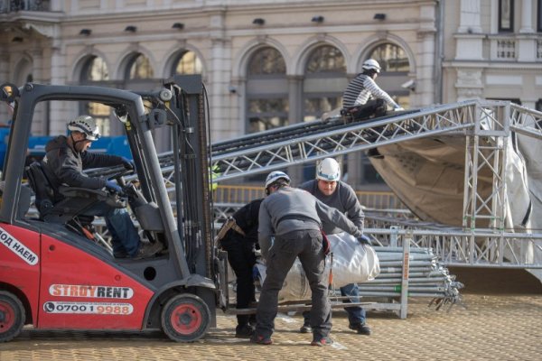 Работници започнаха изграждането на сцената за новогодишния концерт в София.