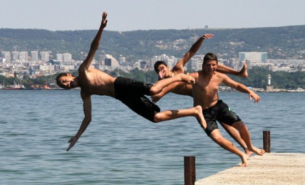 Едно от любимите за скокове във водата е кейчето на аспаруховския плаж, разказва Булфото. Жегата отново се завърна по морето и много хора потърсиха днес прохлада на плажа.