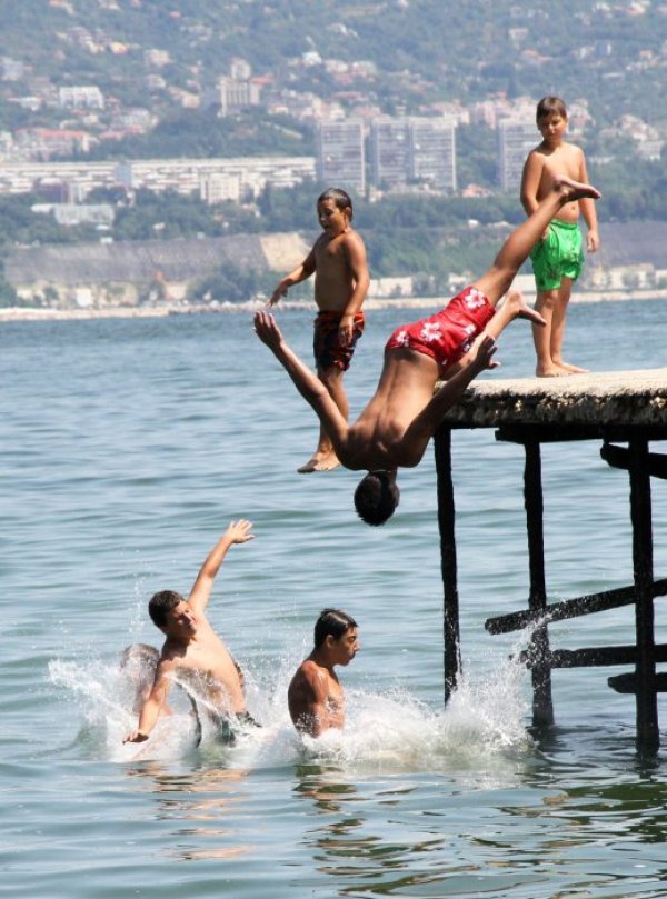 Едно от любимите за скокове във водата е кейчето на аспаруховския плаж, разказва Булфото. Жегата отново се завърна по морето и много хора потърсиха днес прохлада на плажа.