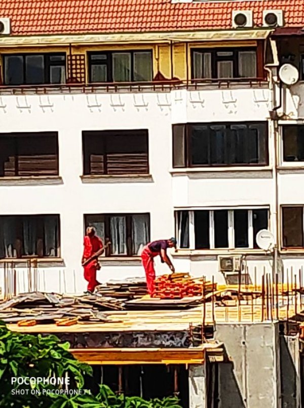 В друг сигнал потребител е изпратил снимки на работници без каски на строеж в столичния район Слатина, което е в разрез с изискванията за безопасен труд. Строителните работи се извършват по всяко време на деня, без оглед на определените от закона часове за почивка. Гражданинът апелира към Изпълнителна агенция "Главна инспекция по труда“ за проверка и становище