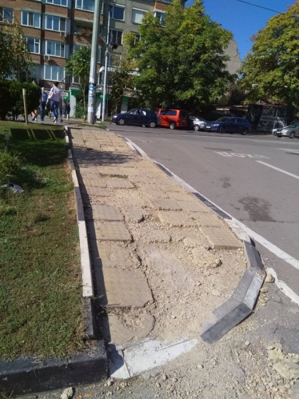 Алармираха ни и за тротоар на голям столичен булевард в окаяно състояние. От изпратените снимки е видно, че плочките са изпочупени и се ронят, а на някои места изцяло липсват, а заради неравностите достъпът е силно ограничен и дори невъзможен за детски и инвалидни колички, както и за хора с патерици и бастуни.