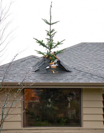 Вместо това изобретателният американец отрязал дървото на две части. Горната част оставил на покрива, като го обградил с керемиди и така създал илюзията, че дървото е пробило тавана и се е появило на повърхността на покрива.