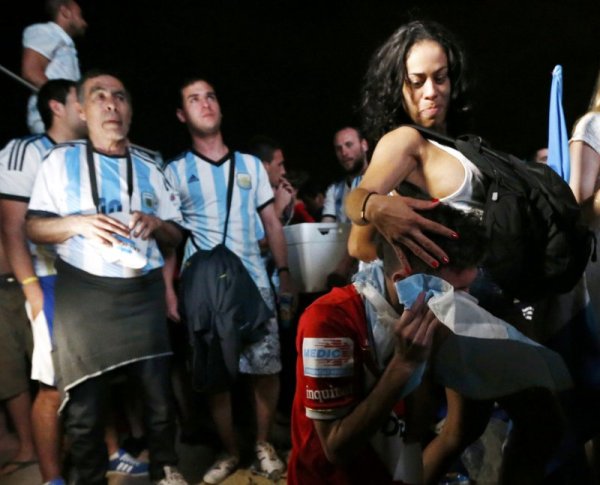 "Маракана", Рио Де Жанейро, цяла Аржентина и Германия обаче бяха един казан от емоции. 120 минути битка, която държа в напрежение и феновете по цял свят, а след последния сигнал на Рицоли милиони хора бяха на двата полюса. За едни радост, за другите остана тъгата.