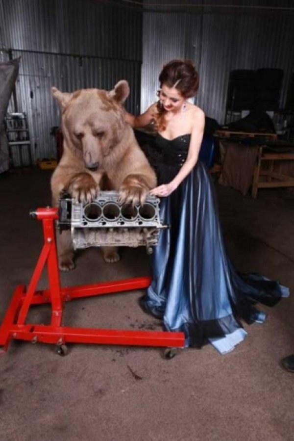 Юлия е собственик на автосервиз в Москва. 28-годишното момиче е монтьор по образование. Искала да наеме професионален модел за фотосесията с мечката, но никой не се съгласил. Затова позирала самата тя. Вижте!