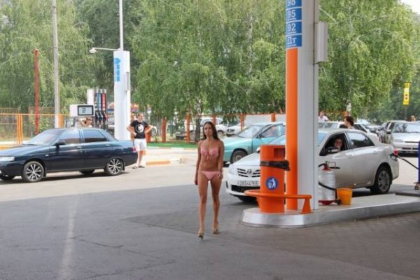 В град Самара местна бензиностанция е обявила повече от хубава промоция. Предлага безплатно гориво, но само на клиенти от женски пол и то по бикини. Оказва се, че желаещи не липсват. Нещо повече - редят се на опашка.