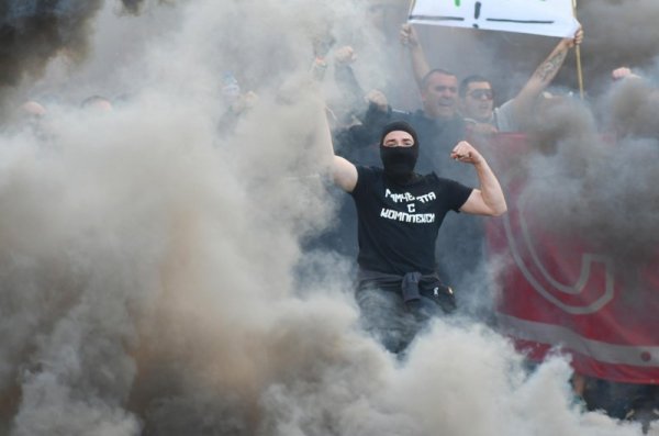 Фенове на ЦСКА се събраха в района на Кравай за шествие преди днешното дерби с Лудогорец, предаде БулФото.