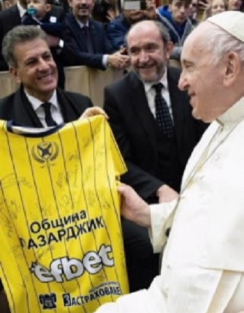 Шампионът на efbet Супер Волей може да причисли към нарастващата си маса от фенове и папата, който получи подарък фланелка на отбора, подписана от всички играчи в редиците на състава, воден от Камило Плачи.